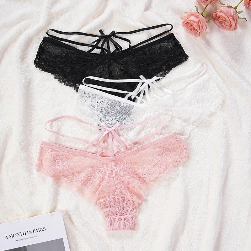 Panty de encaje tiro bajo (Low-Rise) con diseño criss-cross que agrega un toque moderno y femenino.