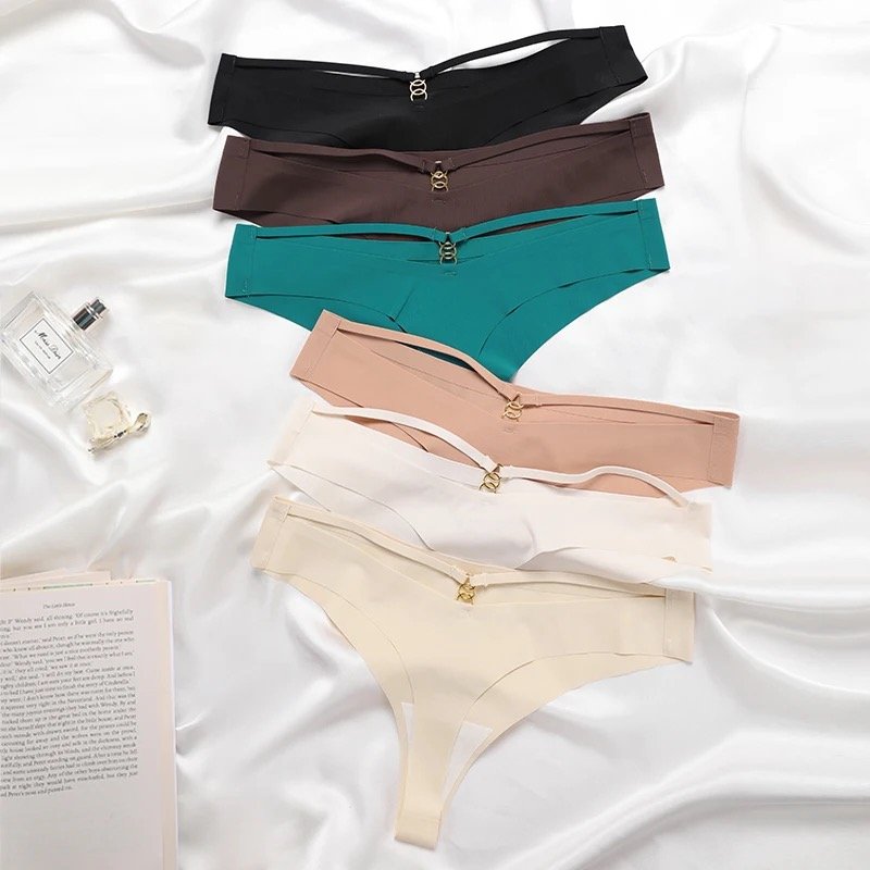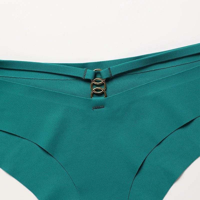 Pack de 4 tangas tiro bajo (Low-Rise) con diseño liso y elegante. Cada tanga cuenta con delicados aros dorados en la parte trasera, agregando un toque moderno y sofisticado a tu ropa interior diaria.